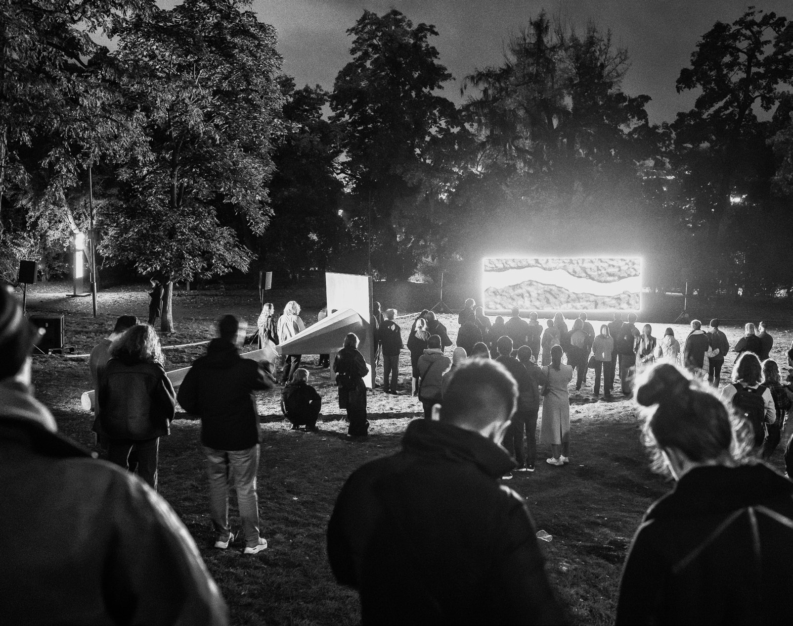 Úvodní foto: Diváci sledují dílo Davida Přílučíka a kol. (CZ, SK, UA) v Riegrových sadech na pražských Vinohradech. Foto Tomáš Slavík