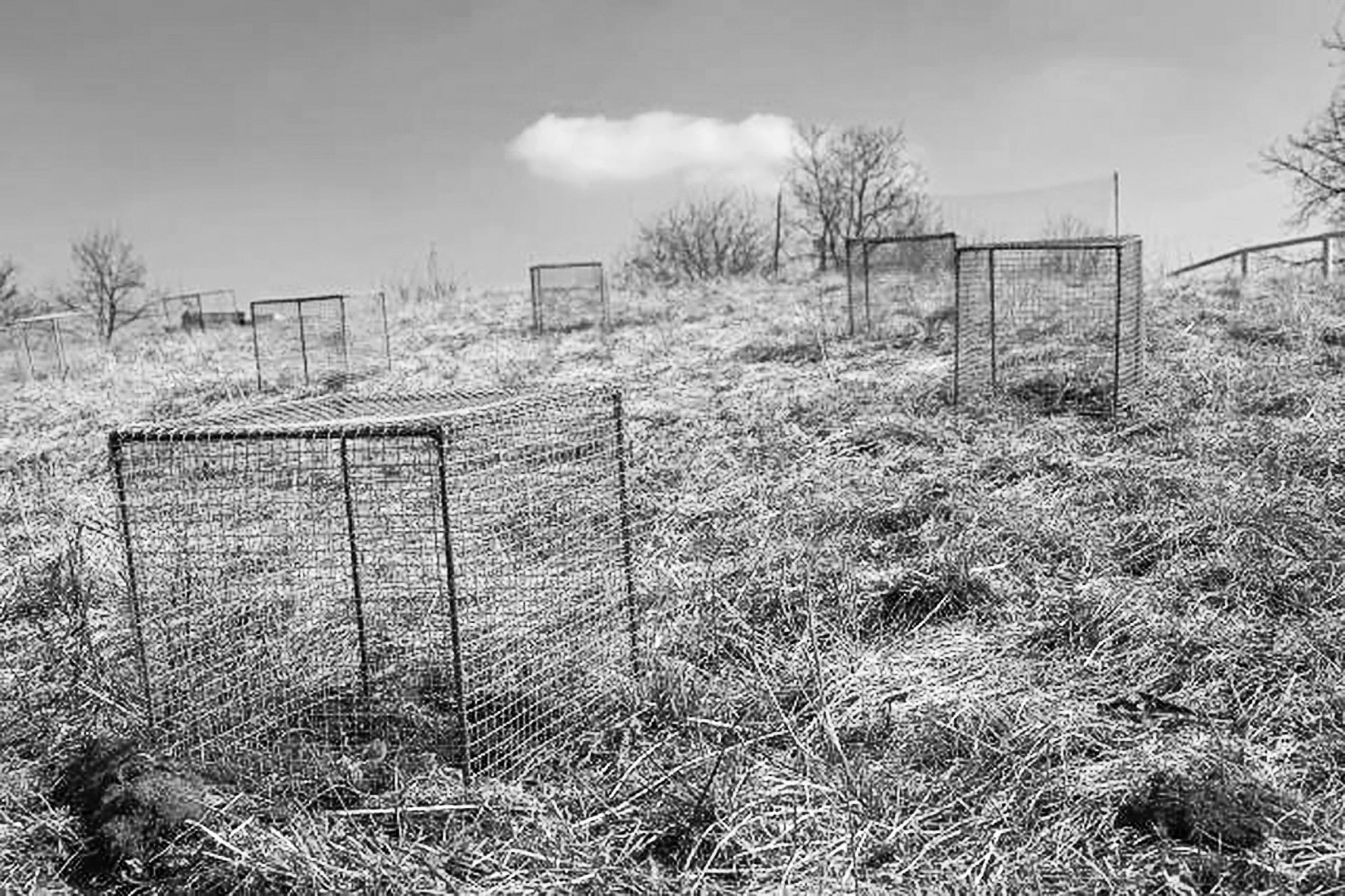Úvodní foto: Klece chránící koniklece otevřené před okusem. Foto Petr Vít