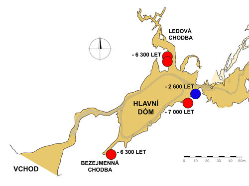 Relevantní výsledky analýz byly k dispozici až v březnu tohoto roku. Vzorky ze čtyř odebraných objektů neměly dostatečné množství uhlíku k exaktní analýze. Podařilo se datovat pouze dva vzorky, oba odebrané z kresebných stop v severovýchodní části Hlavního dómu. První z nich svým stářím (cca 2500–2800 let) zapadá do období halštatu. I tato skutečnost je překvapivá, protože dosud se nepodařilo v Moravském krasu nalézt kresbu či kresebnou stopu z tohoto období. Druhý vzorek byl datován do období před cca 7000–7200 lety.