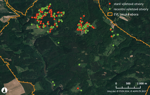 Rozšíření tesaříka obrovského v Lánské oboře v roce 2015.