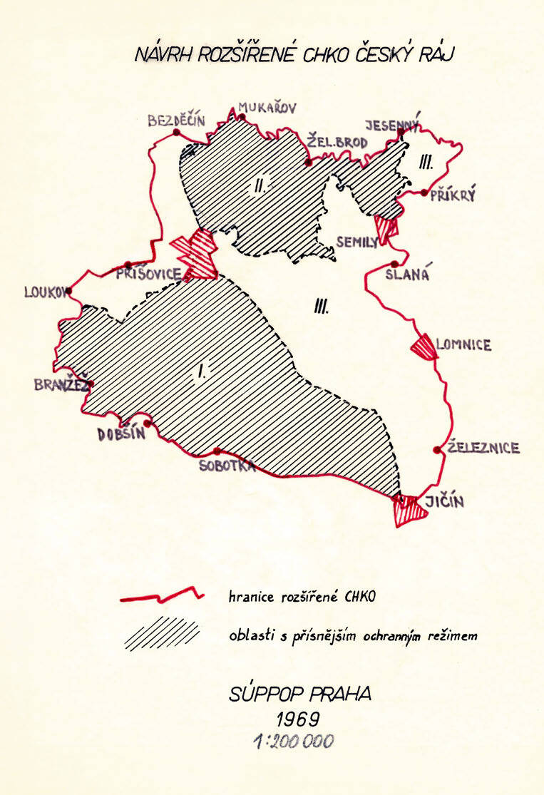 Návrh rozšíření CHKO Český ráj z roku 1969. Archiv AOPK ČR
