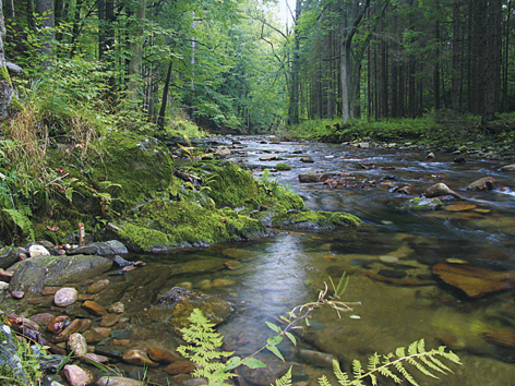 Zachovalá říčka Zdobnice v CHKO Orlické hory s přirozeným korytem toku zaříznutým v hlubokém údolí; v místě má být hájená lokalita Pěčín.