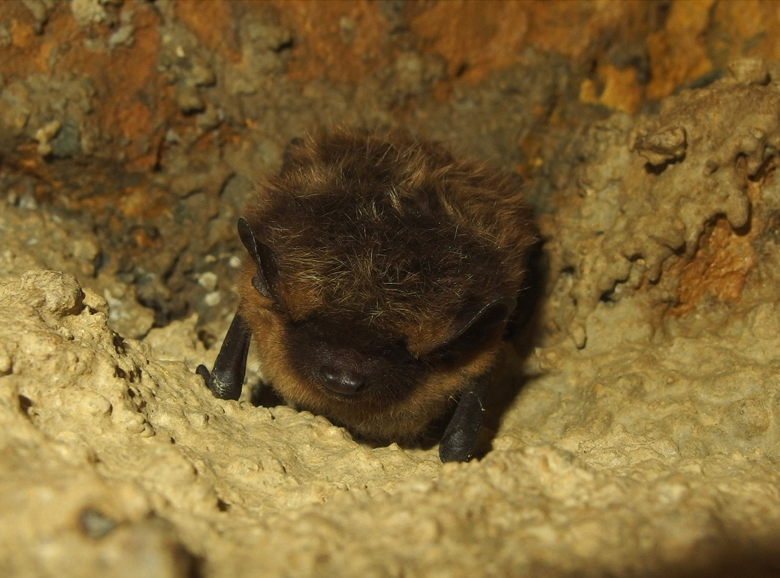 Netopýr Brandtův (Myotis brandtii ) – lesní druh netopýra, který se častěji vyskytuje v chladnějších částech jeskyní. Foto Martin Koudelka