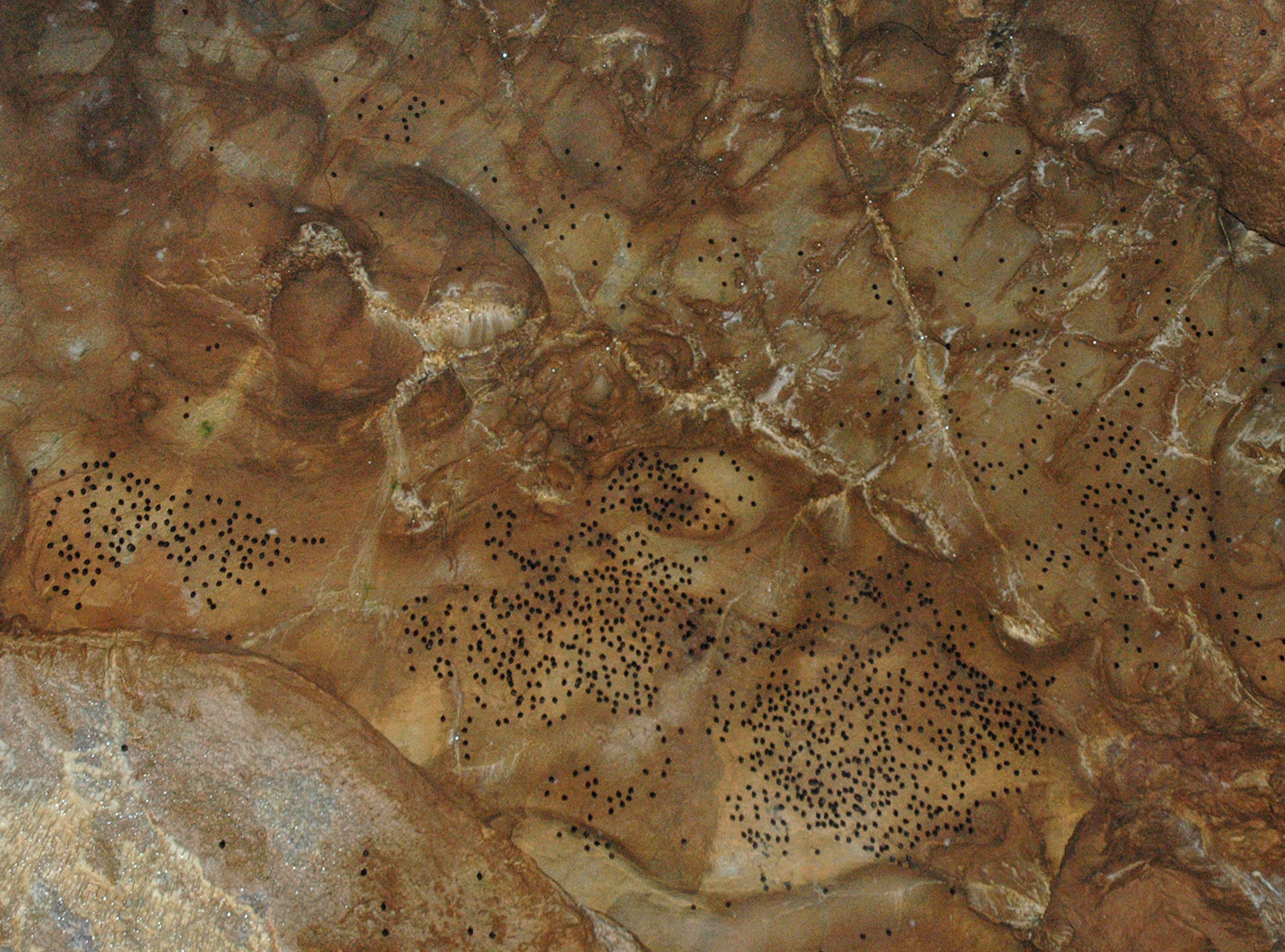 Strop dómu Gigantů je místem hromadného výskytu zimujících vrápenců malých (Rhinolophus hipposideros). Foto Jiří Šafář