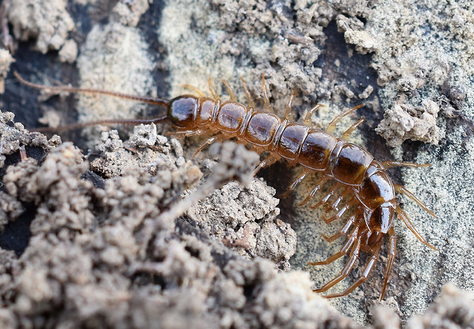 Obr. 1 Strigamia acuminata je nápadná červená zemivka. V rámci našich