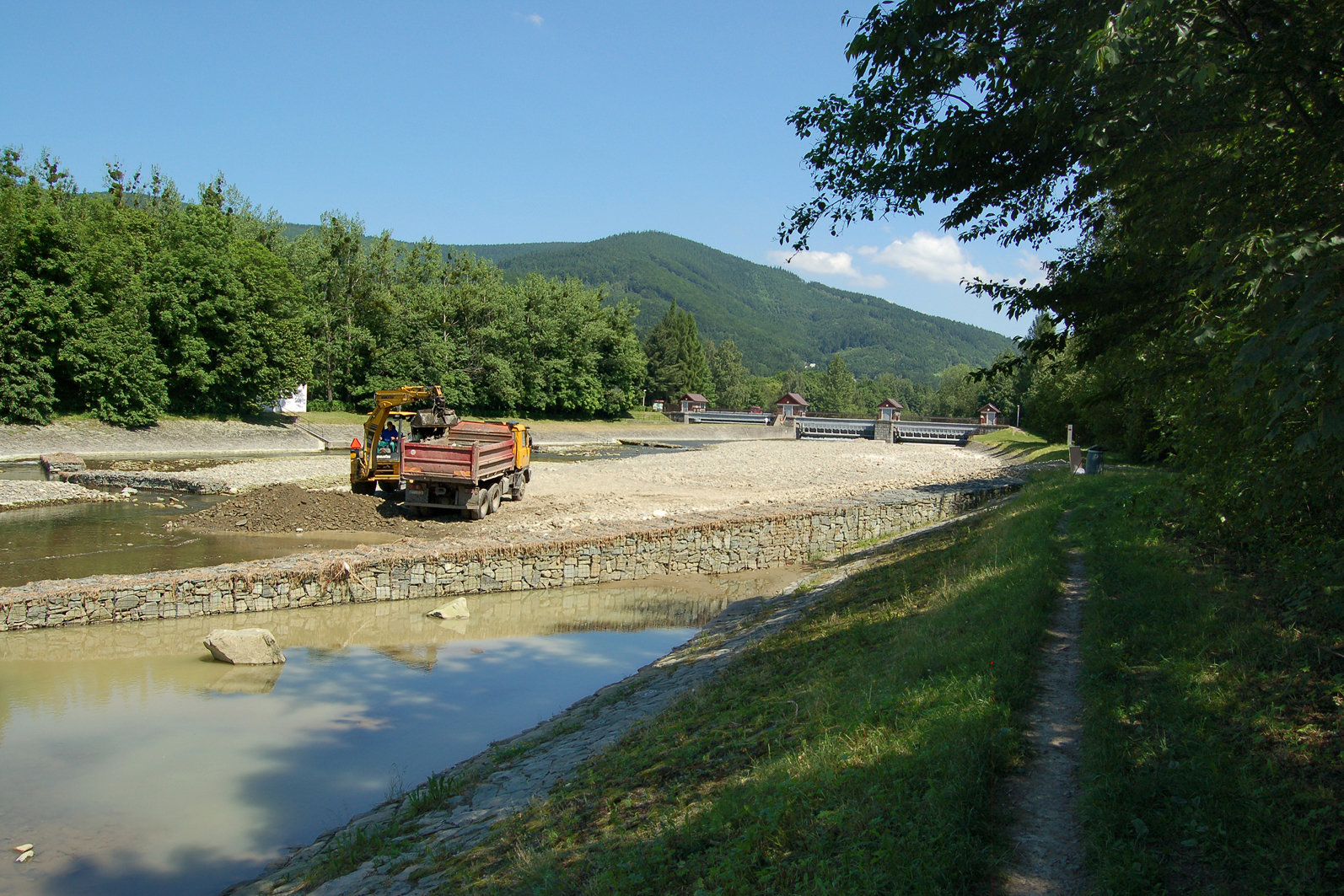 Těžba štěrkových sedimentů na řece Morávce v mezijezí ve Vyšních Lhotách v roce 2010.