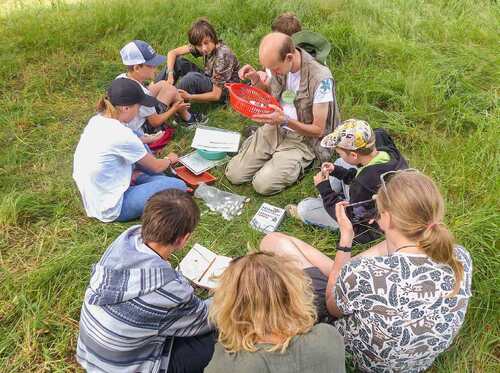 Národní kolo Zlatého listu je pětidenní akce s bohatým odborným programem. Na fotografii se jedna ze skupinek účastníků právě zabývá pavouky. Foto Jan Moravec